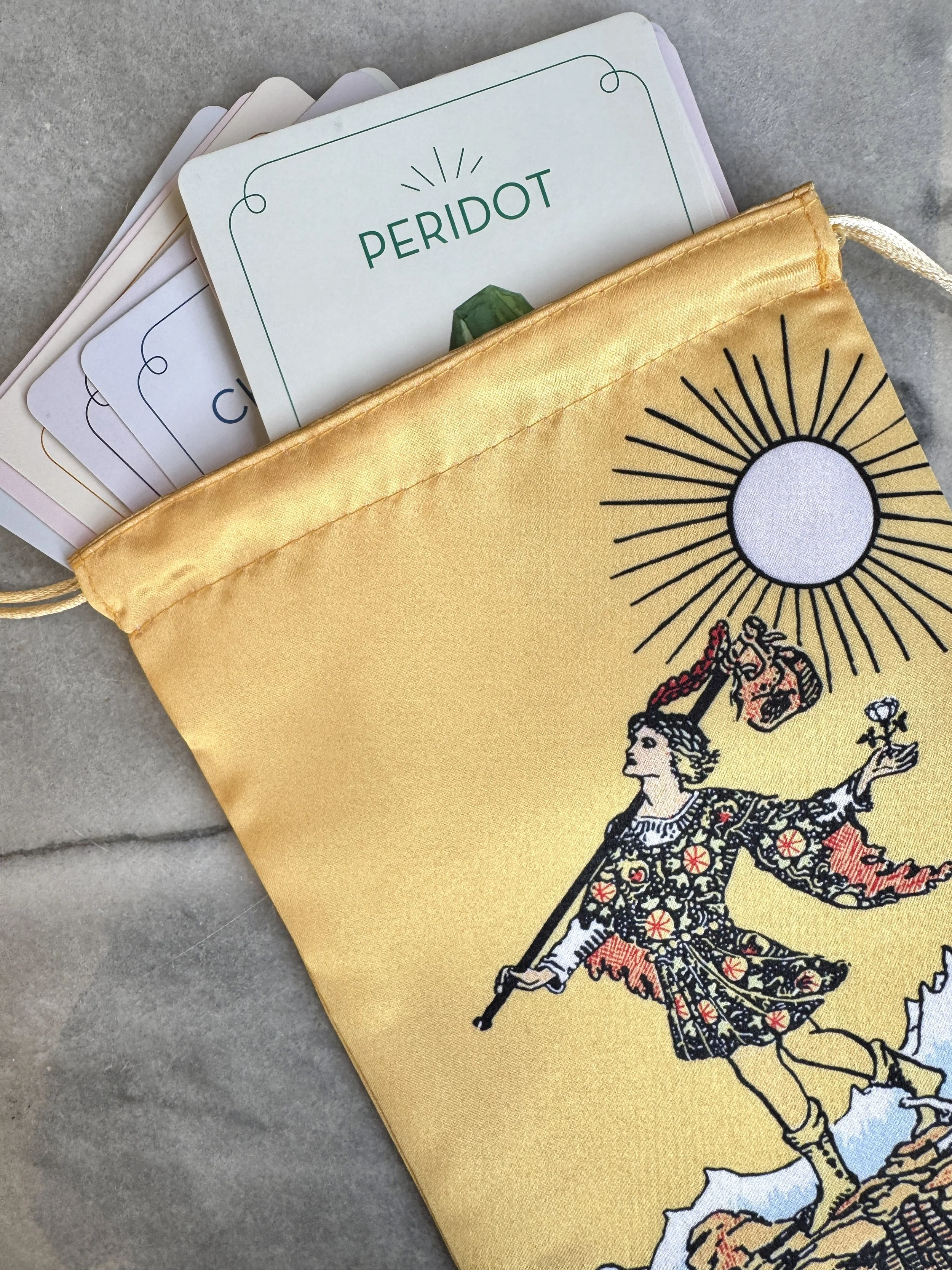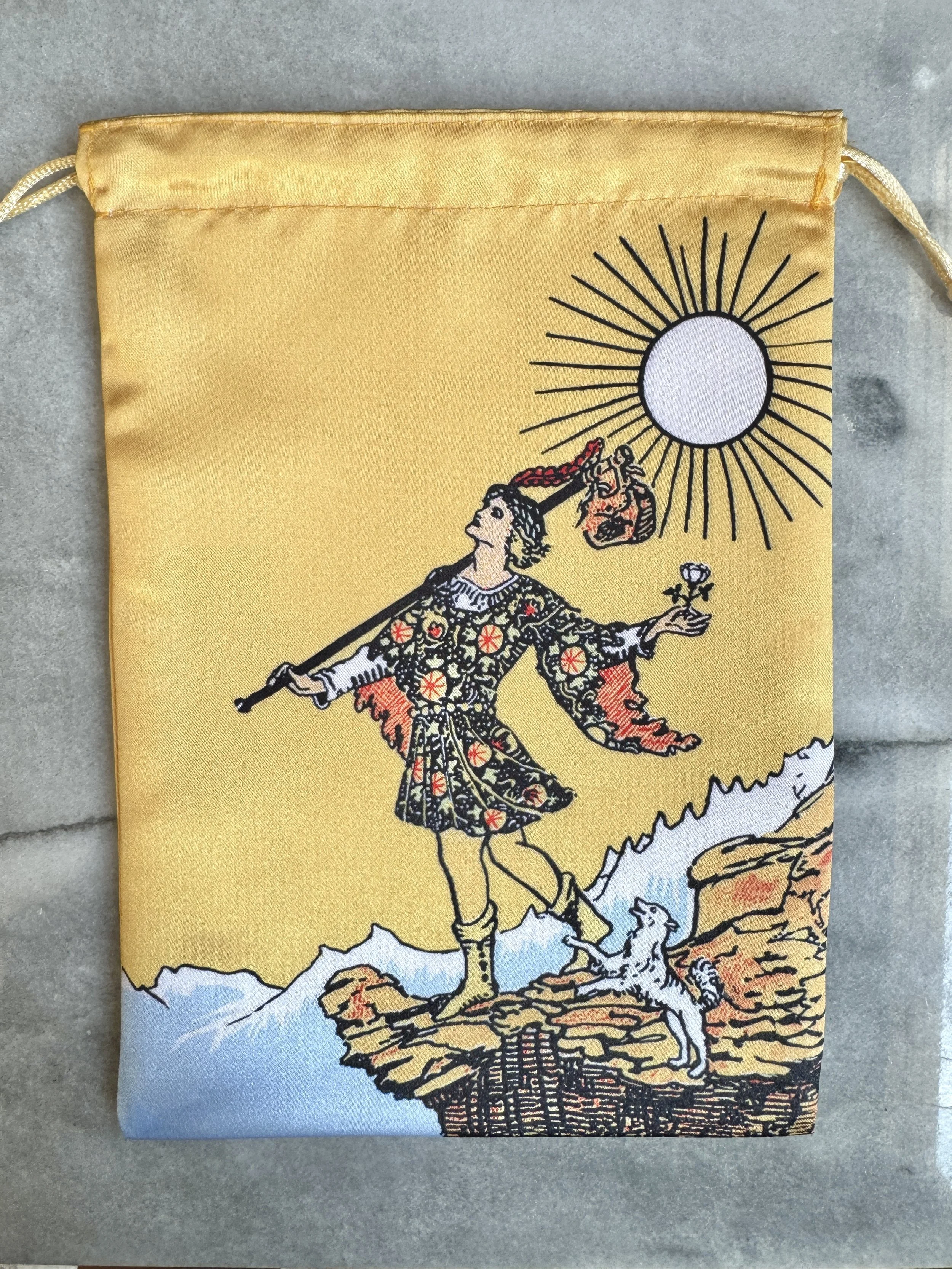 Tarot | Oracle Cards › Tarot Altar Cloth Image 1 of 3 Image 2 of 3 Image 3 of 3 Tarot Altar Cloth $5.00 18×18 inches Design: Goddess Pentacle Quantity: Add To Cart Added! 18×18 inches Reviews Reviewer Name Review Date Star Rating Description Posted on Etsy Product Show More You Might Also Like The Fool Tarot Card Drawstring Pouch $12.95 Tarot Suites Drawstring Pouch $12.95 Tarot Card Holder from $4.99 Oracle and Tarot Bags $10.00